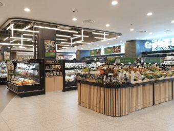 食品売場の改装では、冷蔵ケースや什器の配置変更、壁・床・天井の改修、照明演出などで買い物のしやすさと売場の魅力を高めます。